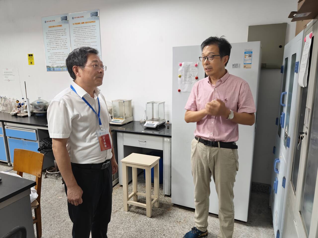 在检查过程中,江厚顺副校长仔细询问了各实验室的基本情况,详细了解实验室在安全操作规程执行、应急预案制定以及危化品、气体钢瓶、危险废物收集等危险源安全管理方面的具体做法。